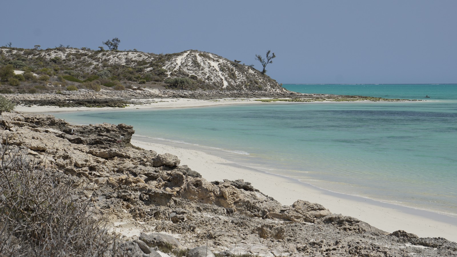 Nach der langen Fahrt durch die Piste verdient man heute das Meer zu geniessen. Das blau türkische Wasser lockt zum Baden. Ein Spaziergang entlang des feinen weissen Strandes sollte nicht verpasst werden.