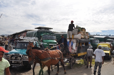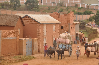 Nach dem Frühstück fahren wir Richtung Andasibe über Antananarivo weiter. Vorher unternehmen wir eine Rundfahrt mit „pousse- pousse“ (Rikscha).