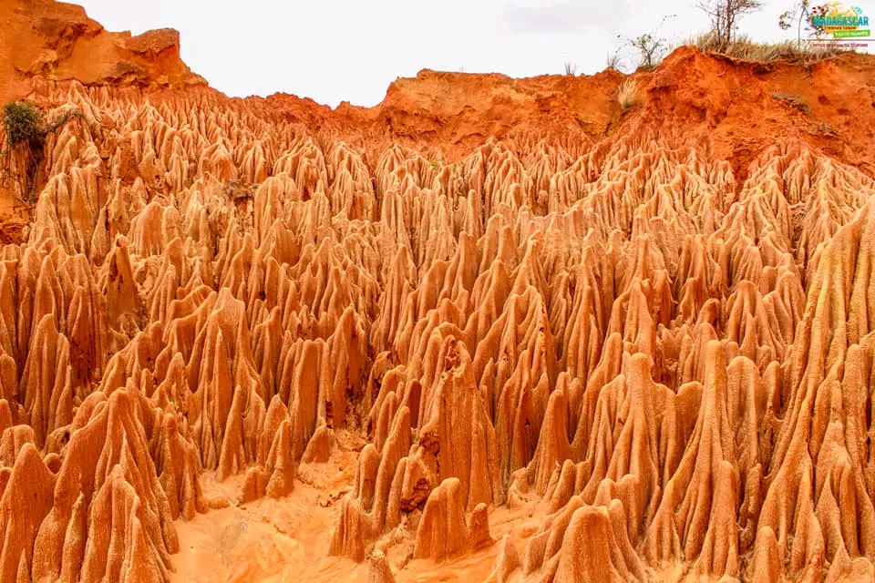 Vor der weiteren Fahrt nach Ankarana erkunden wir die bizarre Formation der roten Tsingy. Diese lateritische Erdschichten sind durch Erosionen entstanden.